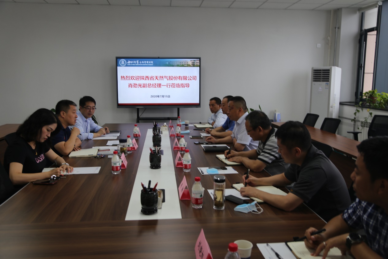 7月15日上午,陕西省天然气公司(以下简称:天然气公司)副总经理肖劲光一行6人到我院就人才培育、科学研究等事宜的合作进行了座谈。我院雷晓康院长、靳洪涛副院长、封超老师参加了座谈会。
