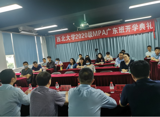 长安秋爽,羊城穗香,2020年10月17日上午,西北大学MPA2020级广东班开学典礼在广州天河区隆重举行,西北大学公共管理学院(应急管理学院)党委书记孙录见,副院长靳洪涛,院长助理、MPA中心副主任岳成浩、广东教学中心负责人以及2020级广东班全体新生参加。