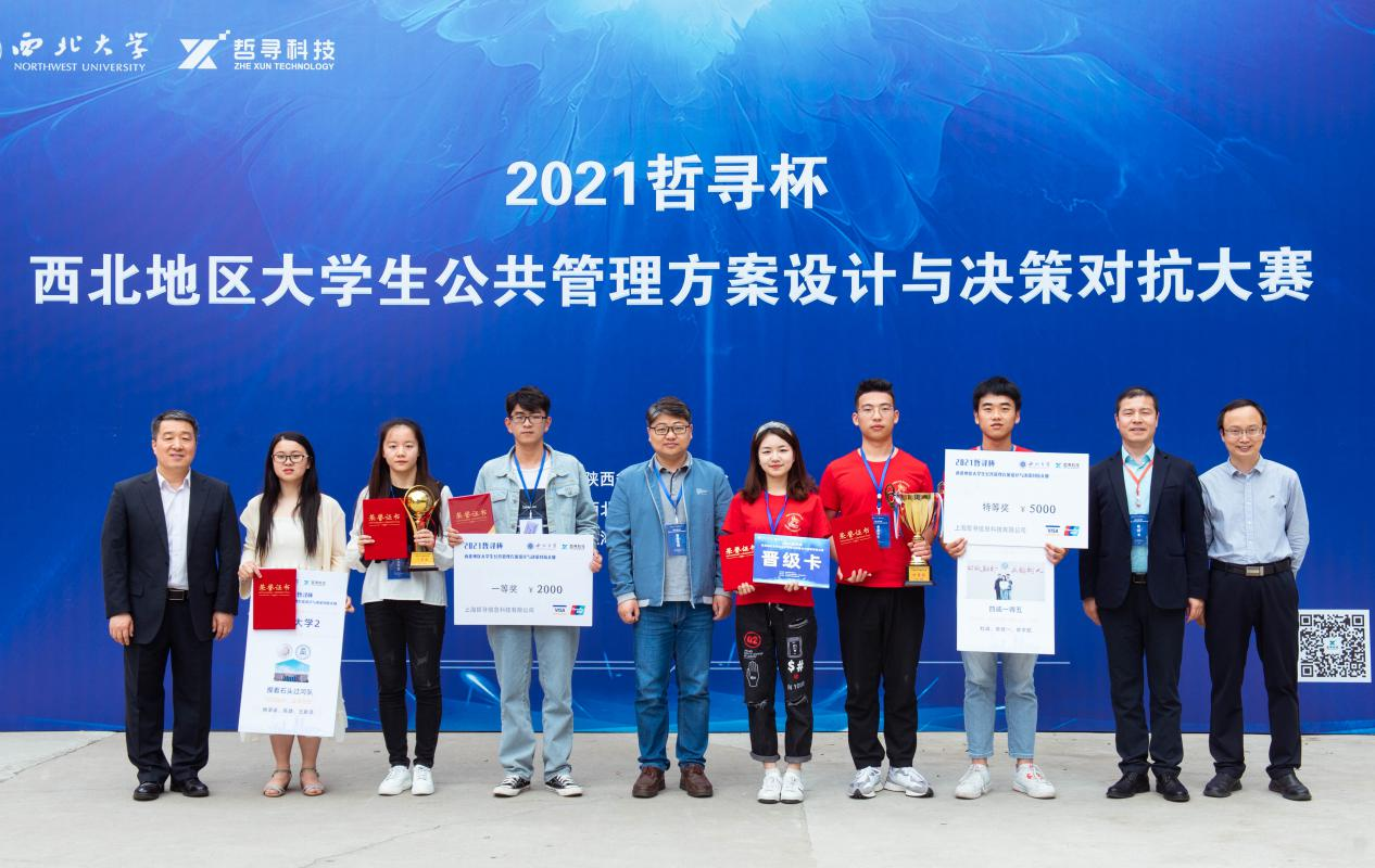 大赛由公共管理方案设计、决策沙盘对抗和现场团队答辩三部分构成。经过一天半的角逐,西北大学、新疆大学、长安大学、昌吉学院、新疆师范大学等5所学校的参赛队伍获得特等奖,陕西中医药大学等14所院校的参赛队伍获得一等奖,宁夏师范学院等19所大学的参赛队伍获得二等奖,西安工程大学等3所学校的参赛队伍获得最佳人气奖,青海民族大学等3所大学的参赛队伍获得最佳对抗决策奖,兰州大学等3所大学的参赛队伍获得最佳公共管理方案奖。我院司林波教授指导的“四诚一得五”队和郭斌副教授、马子博博士指导的“摸着石头过河”对分别获得特等奖和一等奖。省高等教育学会副会长、副秘书长姚聪莉教授莅临大赛闭幕式并为获得特等奖的团队颁奖。