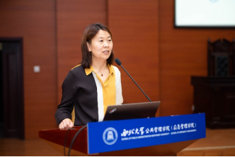 教育部高等学校公共管理类专业教学指导委员会委员、新疆大学政治与公共管理学院雷霆教授作了题为《新文科建设视角下新疆公共管理学科发展思路——以新疆大学为例》的报告。雷霆教授首先介绍了新疆大学公共管理学科的总体情况、历史沿革、学科建设、人才队伍、智库建设和研究特色等情况,雷霆教授指出,新疆大学着重以社会稳定和长久治安为原则发展公共管理学科,培养高度实用性和需求为导向的人才。新疆大学政治与公共管理学院在学生培养方面取得了积极成就,毕业生服务于各行各业,研究生培养具有较高质量,为服务西部大局作出巨大贡献。坚持需求导向和问题导向是公共管理学科发展的理念,大力运用新技术、注重高素质创新人才的培育是支撑新疆大学公共管理学科发展的重要途径。