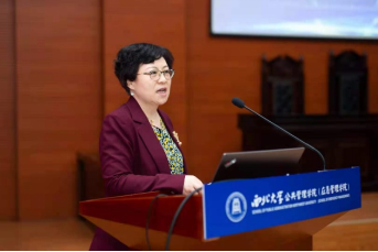 湘潭大学公共管理学院院长梁丽芝教授作了题为《新文科建设背景下中西部地方高校公共管理学科建设面临的挑战、机遇与发展对策》的报告。梁院长详细介绍了湘潭大学公共管理学科的基本概况,并对新文科的基本内涵作出阐释,认为新文科是培育担当新时代大任的社会科学人才,新文科的“新”主要体现在人才培养、知识生产和学科结构体系三个方面,新文科旨在打通文科学科间的边界,提炼中国现代化的知识体系和话语体系,新文科为公共管理学科发展提供了新理念。梁院长指出,目前中西部师资队伍质量和数量与新文科建设要求尚有差距、知识生产的能力和水平与新文科建设要求存在距离、学科融合发展的程度与新文科建设要求有所欠缺。地方治理体系与治理能力建设的深层推进、中西部地方经济社会的飞速发展以及双一流背景和新文科背景下学科评估体系的重大变革是中西部公共管理学科发展的机遇。最后,梁院长将中西部公共管理学科的发展路径归结为“一个原则,四个基本点”,“一个原则”是研究新的学科评估体系,将人才培养质量放在首位,坚决破除“五唯”的顽疾,“四个基本点”是突出人才培养的中心地位、突出服务地方社会发展的导向作用、突出科学研究的特色性以及突出师资队伍的基础性。
