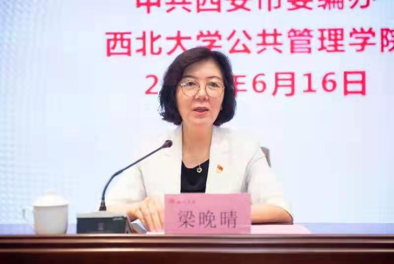 西安市委组织部副部长、市委编办主任梁晚晴首先感谢西北大学公共管理学院对此次培训的高度重视与认真准备;随后介绍了举办本期培训班的背景和意义,并结合自己工作强调,坚持机构编制工作正确的政治方向,切实提升政治“三力”,坚持以能力提升促工作落实,提升机构编制队伍综合素质,坚持以好学风促新成效;最后,向全体培训学员提三点要求:一是要倍加珍惜培训机会,确保培训取得实效。二是要锻造机构编制“铁军”队伍,全面激发争先活力。三是严肃学习纪律,营造优良学风。