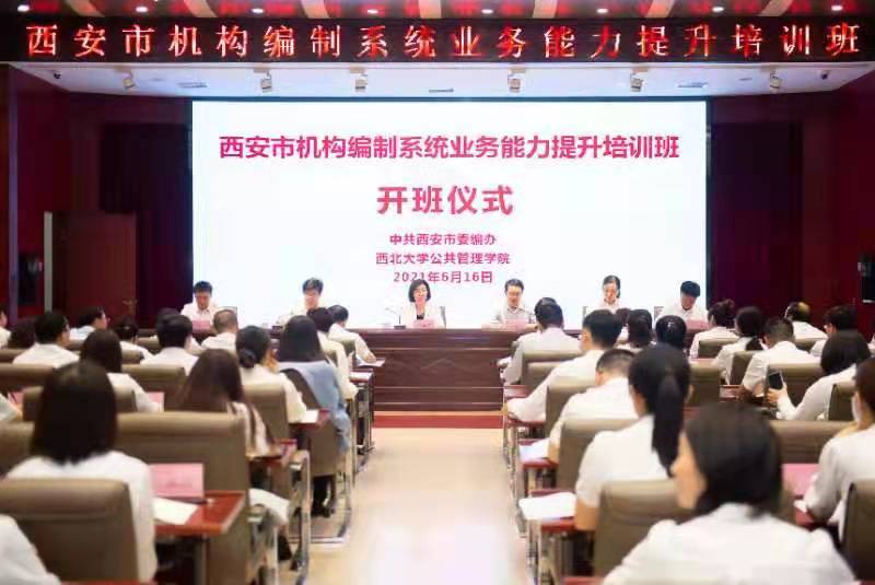 2021年6月16日,由西北大学公共管理学院承办的西安市机构编制系统业务能力提升培训班在西北大学举行开班仪式。西安市委组织部副部长、市委编办主任梁晚晴,西北大学党委常委、副校长张远军,来自西安市各级机构编制系统120余位学员们参加开班仪式,开班仪式由西安市委编办督查专员张忠芳主持。