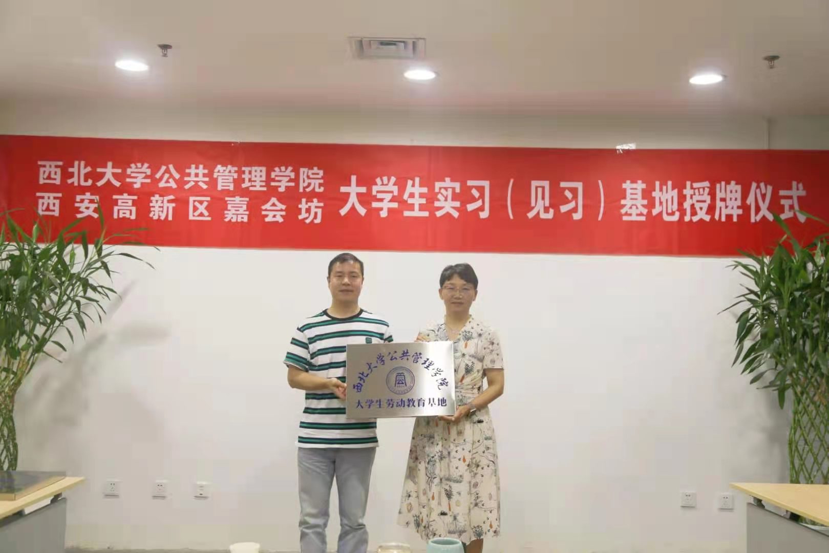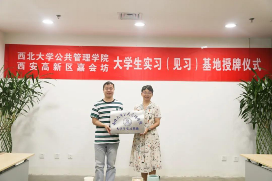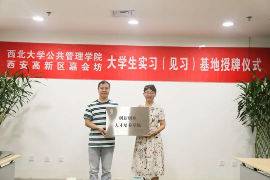 7月2日上午,我院与西安市高新区创业园嘉惠坊共建大学生实习基地授牌仪式在高新区举行。嘉会坊管理办公室主任杨杉、西安创业园投资管理有限公司副总经理杨飞、办公室主任杨丽宁,我院党委副书记韩杰、副院长李尧远和学生带队教师梁炜,以及我院实习学生参加了仪式。