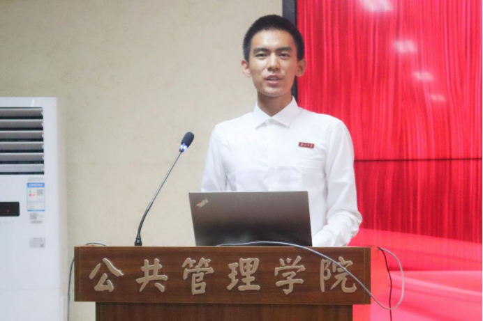 郝康傲同学作为21级本科生新生代表上台发言,表达了对西北大学与公共管理学院的喜爱之情。他认为在今后的学业生涯中要潜心学业,勤勉求真;敢于尝试,全面发展;自主学习,珍惜时间;心怀家国,勇担责任。并传承追求卓越,务实负责的公管精神,成为能对社会,对祖国做出贡献的人。