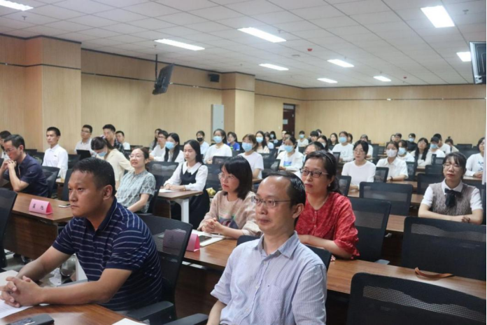 在嘹亮的国歌中,师生们正式迎来了新的学年。首先由孙录见书记宣读2021年公共管理学院高水平大学免试推荐硕士研究生奖励名单。书记对取得成绩的同学给予了高度的赞扬,并号召全体师生向他们学习,争取取得更大的进步。