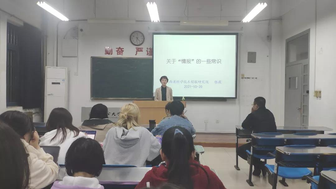 2021年10月20日晚,省科技情报研究院院长张薇受邀为西北大学公共管理学院2021级图档大类新生作情报学专题讲座,此次讲座由我院公共信息资源管理系崔旭老师与王铮老师共同主持,以《关于“情报”的一些常识》为题,以情报学与情报工作的沿革为线索,旨在通过实例剖析和价值解读从宏观视野拓宽学生视野、提升专业素质,为同学提供了解专业的新窗口。
