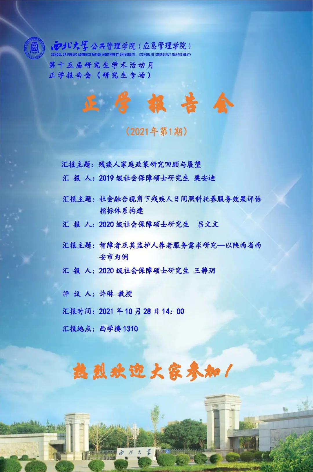2021年10月28日下午我院举办本学期第1期研究生学术报告会。2019级社会保障研究生梁安迪、2020级社会保障研究生吕文文、王静玥主讲,部分研究生旁听了此次研讨会。