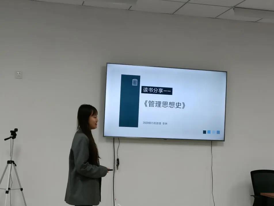 李琳同学分享的是雷恩的《管理思想史》一书。她从作者简介、框架结构、代表人物、总结与反思四个方面来讲述自己阅读后的心得体会。汇报后,张翼博士对其分享内容进行了点评,肯定了本次汇报的内容比较全面,同时还指出未来可以更多关注管理学领域最新的研究成果,尤其是行为科学领域的研究。