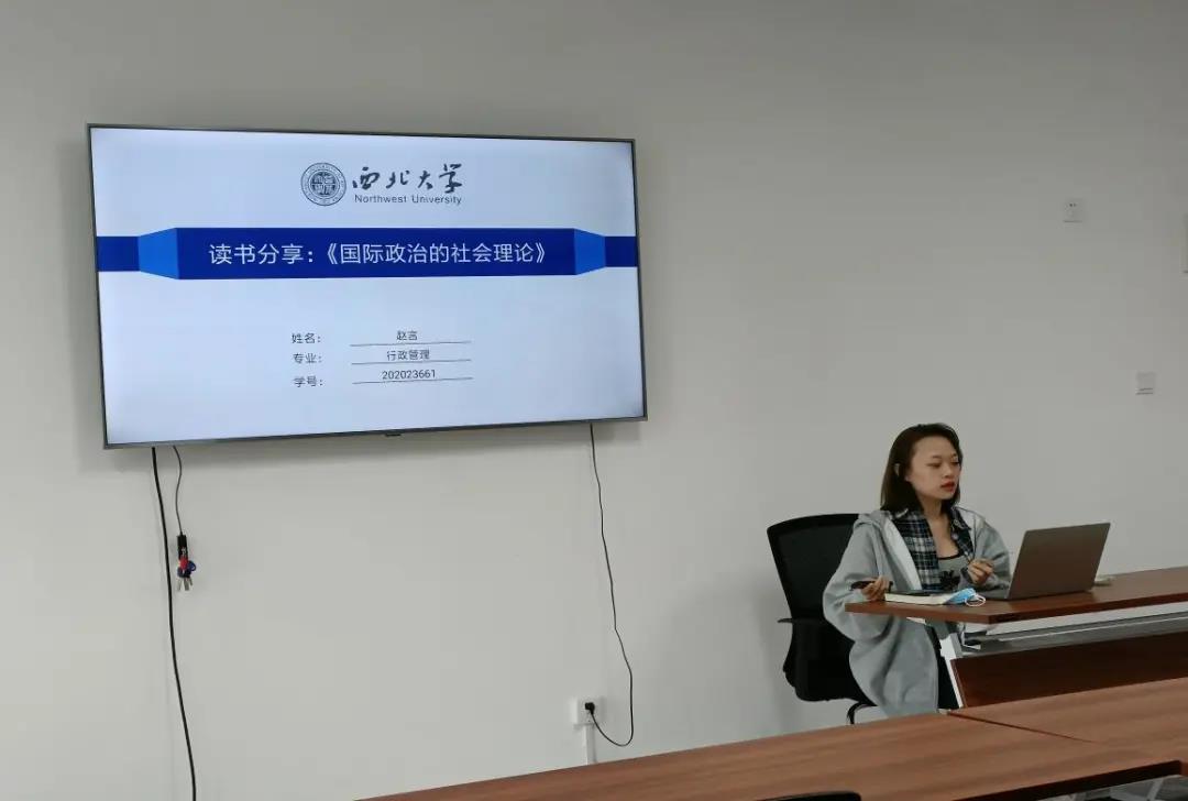 首先,赵言同学分享了俄亥俄州立大学国际安全教授亚历山大·温特所著的《国际政治的社会理论》一书,她从作者写作的理论背景与目的、逻辑思路与框架、内容分析以及评价和反思四个方面来讲述自己阅读之后的心得体会。