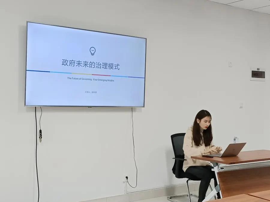 赵乐萌同学分享的是美国匹兹堡大学公共与国际事务研究生院教授盖伊·彼得斯所著的《政府的未来治理模式》一书,她从传统的公共行政模式出发,讲解了传统公共行政的六大特征,后对书中提出的四种未来治理模式:市场式政府、参与式国家、弹性化政府和解制型政府进行了详细的讲解,最后根据我国国情与书本内容进行的结合性总结。汇报后,张翼博士对其内容进行了点评,肯定了汇报内容的全面,也提出在当今社会政府的治理模式并不是单一的模式,多为复合型的治理模式,而真正能够与我国国情相容的治理模式还有待探索。