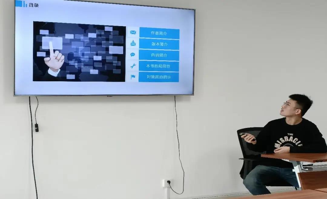 汇报后,张翼博士对其分享内容进行点评,肯定了赵言同学汇报内容之全面,条理之清晰。同时也指出了汇报中的一些美中不足,对于理论的认识可以再全面和细致一些。张翼博士还指出,任何社会科学也可以说人文社科的发展,都是与时代背景紧密联系的,内核都是相似的,学科间的横向联系和基础也非常相似,是非常值得我们在以后的学习中放大视角,站在不同的角度去看去想去研究的。
