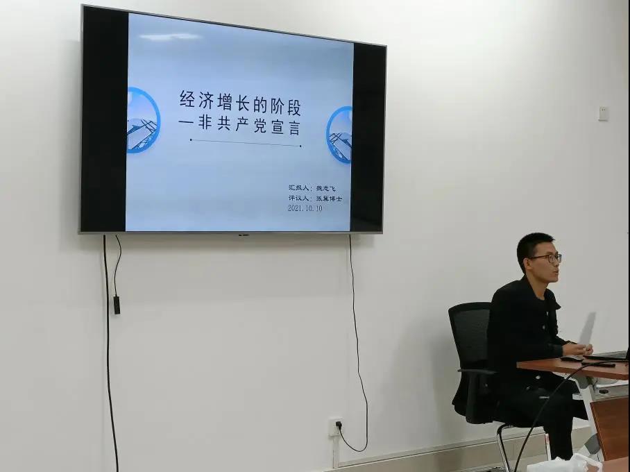 社会保障专业研究生魏志飞同学分享的书目是美国著名经济学家和经济史学家罗斯托的《经济增长的阶段——非共产党宣言》,书中作者首先从经济学、技术决定论的角度出发,以不同经济发展阶段中的主导部门为标准对社会发展阶段进行了划分,他认为整个人类社会发展可以划分为六个阶段,即传统社会、起飞前提条件、起飞、走向成熟、大众高消费时代、追求生活质量。随后对于美苏经济以及经济增长的阶段与战争和平的关系、以及经济增长阶段与马克思主义的社会形态理论进行论述。