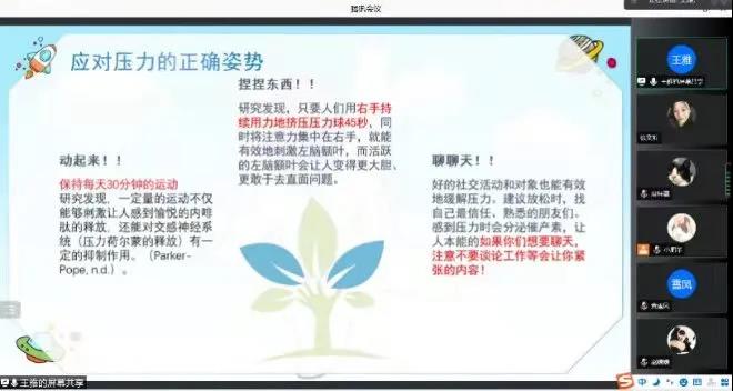 针对个别同学的焦虑、懈怠情绪,以及对疫情防控形势认识不足的情况,公共管理学院举办“战‘疫’有我”系列心理微讲座。12月28日晚,心理微讲座第一期“与压力和解——面对压力的正确姿势”由研究生联合党支部预备党员王雅(21级应用心理学研究生)主持。她将心理学专业知识和具有可行性的日常操作结合,既让同学们对自己目前的焦虑程度及其产生原因有一个较为深入的了解,还分享实用心理学知识,提供了切实有效的建议,为同学们打了一剂“精神防疫”的“加强针”。