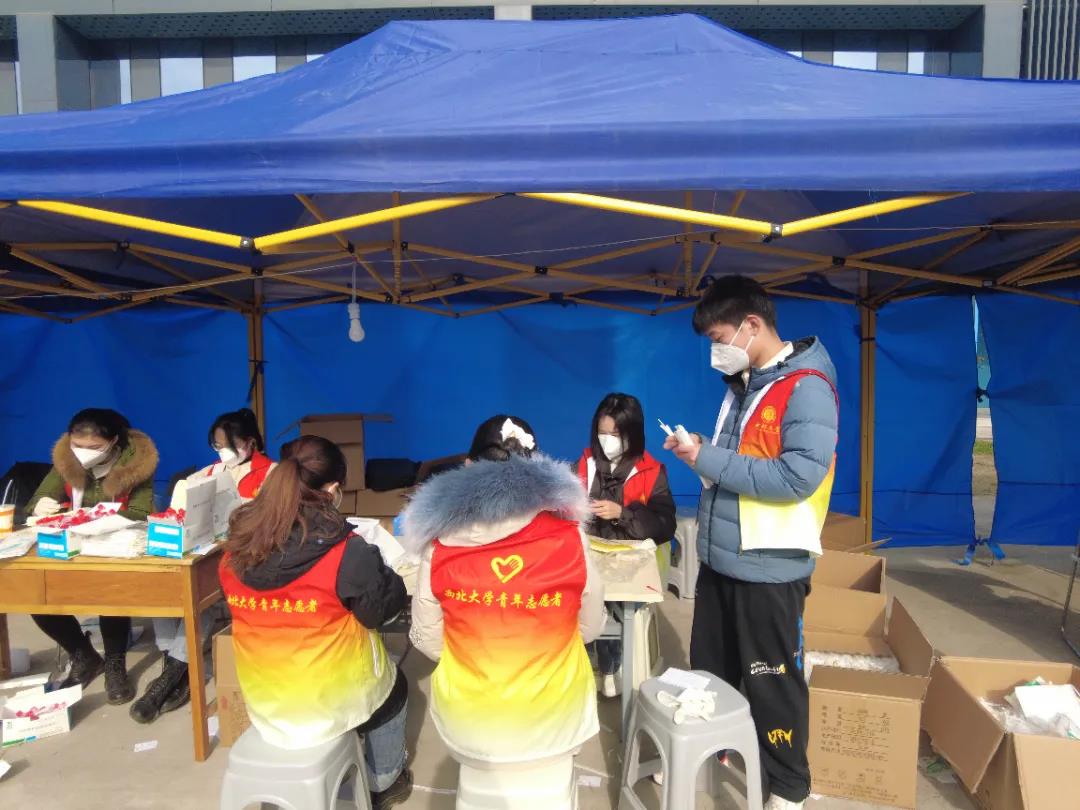 在志愿者登记共享表格上快速报名,随时待命,不顾寒风凌冽,不顾用餐简陋,不顾口罩下已满是雾气,不顾声音已然嘶哑,共青团员志愿者们用最真挚质朴的方式温暖着身边人,用责任和爱心为同学们筑牢疫情防线。