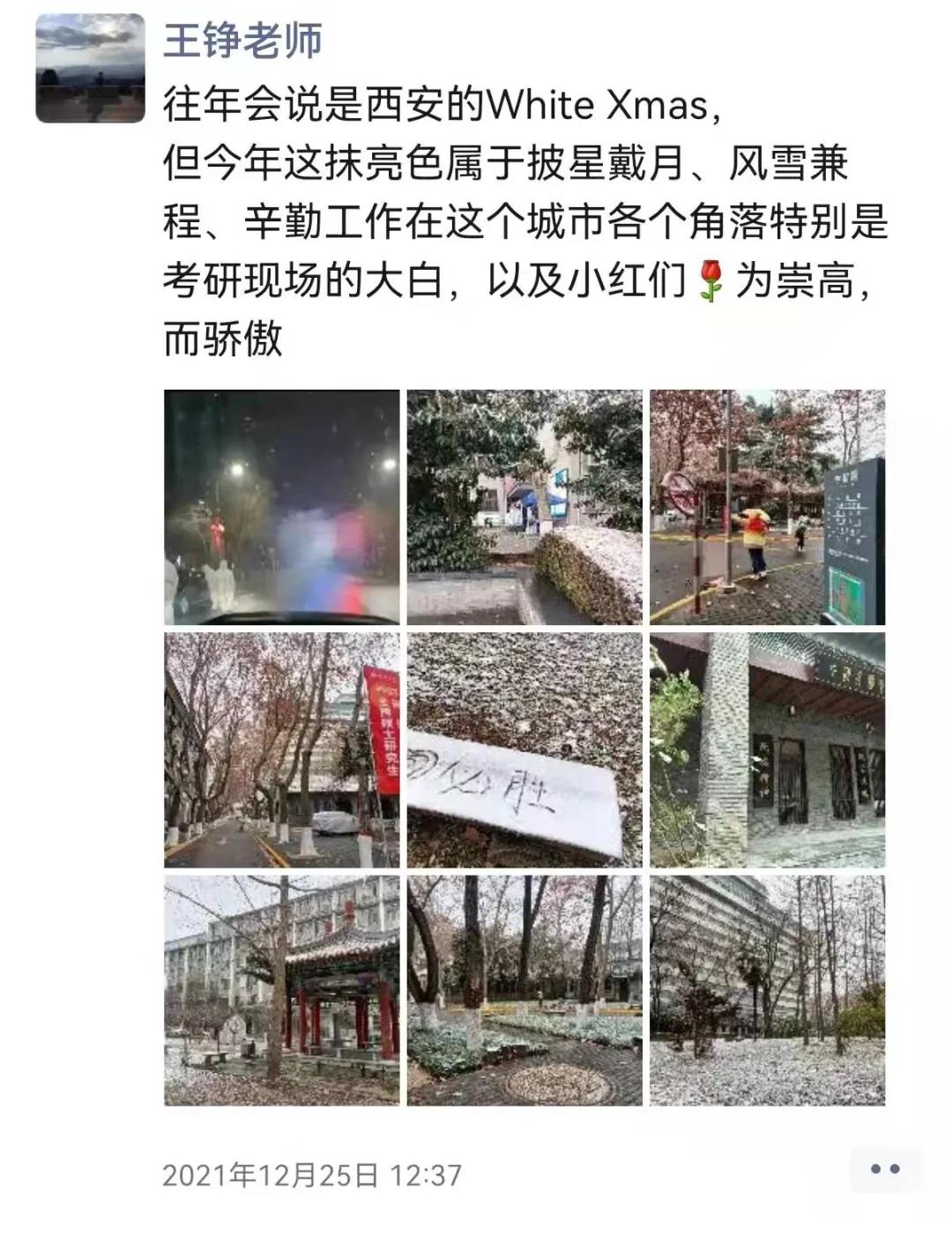 除了三位加入突击队的老师,12月25日清晨,公共管理学院院长雷晓康身着厚重的防护服,冒着严寒,准时地出现在了西北大学桃园校区门口的巡查岗位,为研究生考试的顺利进行提供后勤保障。