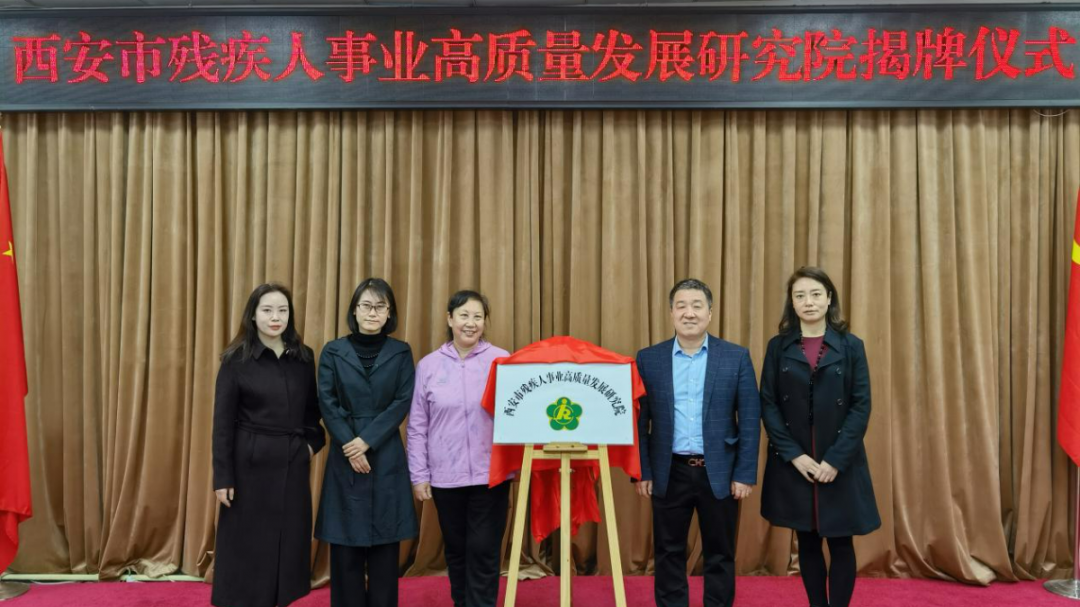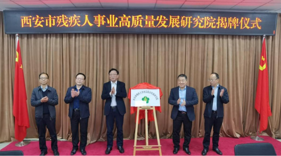 为深入贯彻习近平总书记三次来陕考察重要讲话精神和关于残疾人事业一系列重要论述,加快实现西安市残疾人全面发展和共同富裕的目标,助推西安市残疾人事业高质量发展,2022年4月15日下午,西安市残联与西北大学公共管理学院共建成立的西安市残疾人事业高质量发展研究院正式揭牌。会议由西安市残疾人联合会党组成员、副理事长何永国主持。西安市残联党组书记、理事长赵寅科,副理事长荣京,原二级巡视员尹绪庄,西北大学公共管理学院院长、教授雷晓康,西北大学经济管理学院教授惠宁,西北大学公共管理学院教授许琳,西安电子科技大学教授尚娟,陕西师范大学教授郭文斌,西北大学公共管理学院副教授唐丽娜,西北大学公共管理学院副教授任都甜,陕西省社会科学院副研究员杨红娟,西安工业大学副教授金博,西北大学讲师李东,西安好思达康复器具有限公司、西安中医脑病医院、陕西省康复医院、西安市雁塔区鸿鹰职业技能培训学校的各位负责人,以及市残联机关各处室(中心)负责人出席了本次会议。