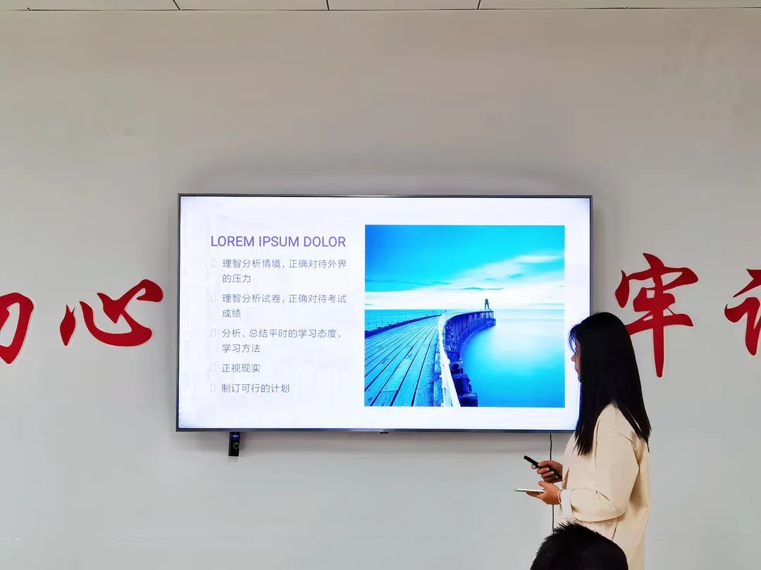 在充满欢声笑语的游戏环节过后,心理班会也迎来了尾声。心委给大家播放了一段励志视频,是一位失去了双臂和双腿但依旧觉得生活充满希望的国外青年发表的演讲,慷慨的演讲词配上激昂的背景音乐,向同学们传递出了本次班会的核心内容——不要因为一时小小的失利就放弃对迎接日后挑战的信心。