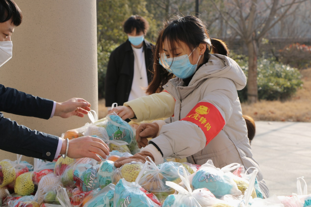 经过认真筹备安排,参照学校疫情防控要求,学院有序组织在校内开展慰问物资发放工作。2022年1月12日上午,我院在长安校区西学楼广场集中为学生发放爱心水果套餐,学院党委副书记韩杰,2019级辅导员陈露,2020级辅导员杨嘉仪,2021级辅导员杨琬钰以及公共管理学院临时团支部的志愿者们共同参与了本次活动。
