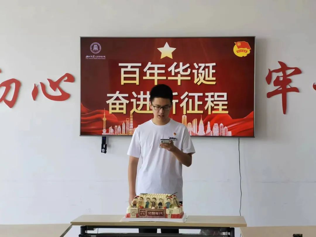 活动的最后,陈露老师为大家分发蛋糕,共同庆祝五四青年节及建团100周年,这次活动大大激发了同学们的爱国热忱,同时也调动了同学们参与社会活动的积极性,为共同助力建设充满活力的美丽校园营造了良好氛围。