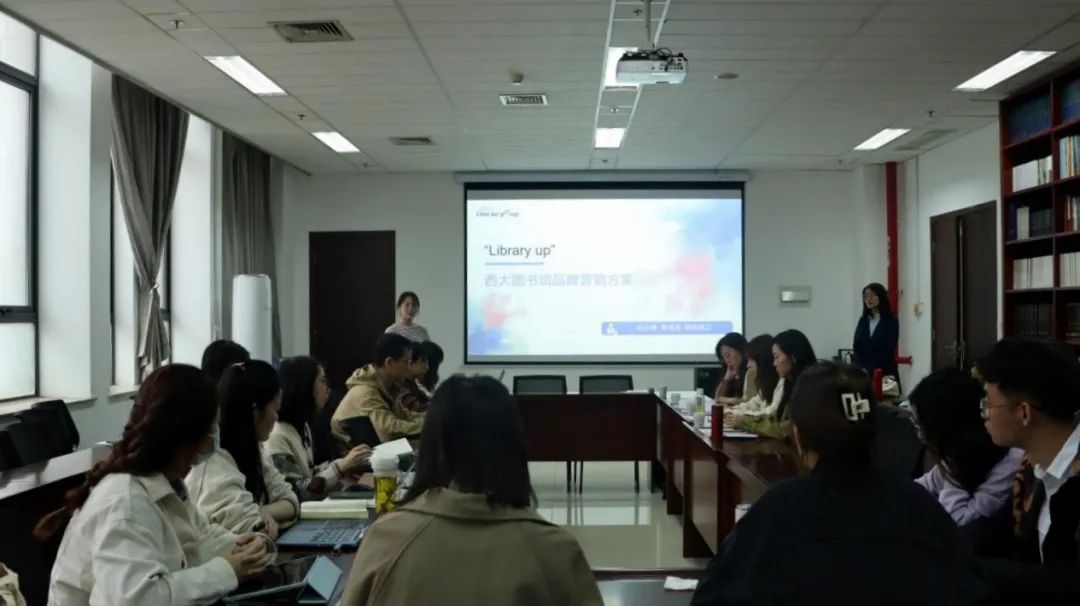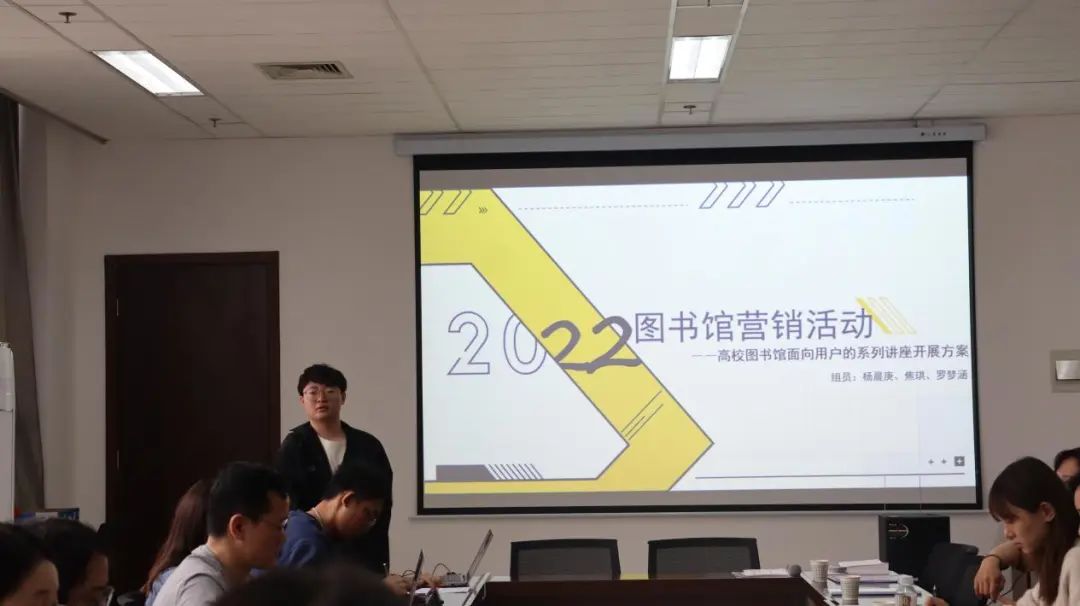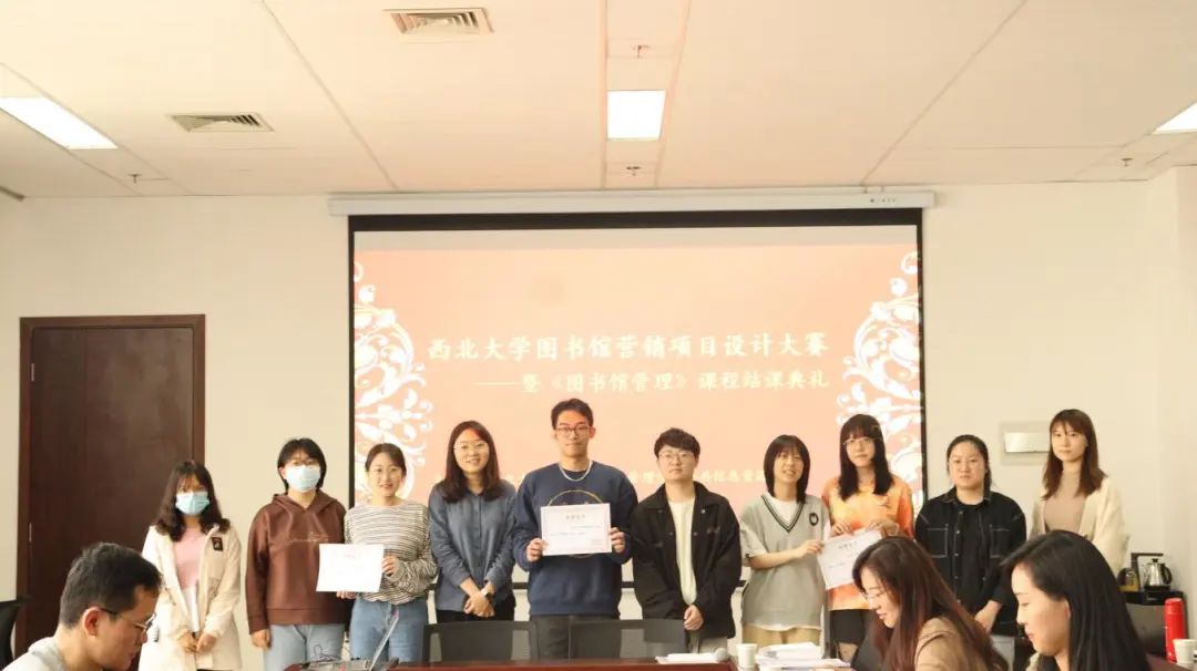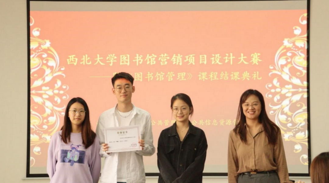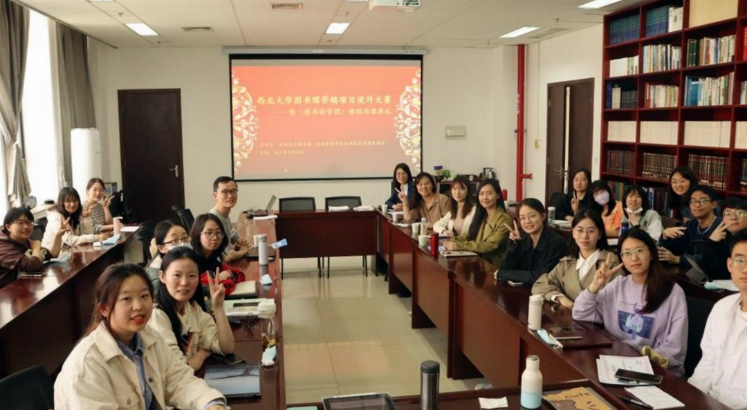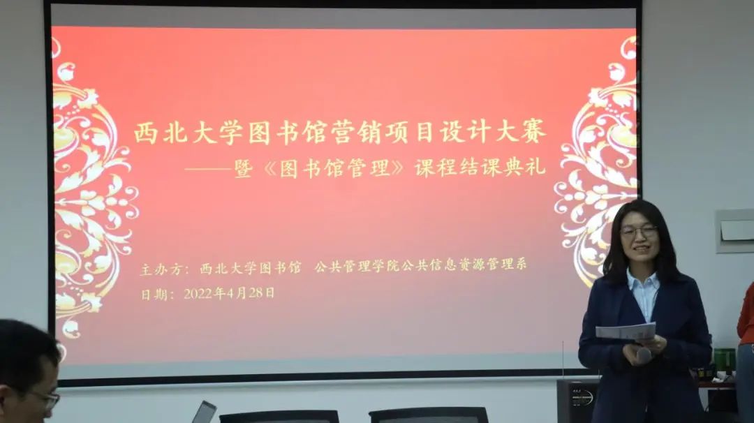 “五一”劳动节前夕,公共管理学院公共信息资源管理系与西北大学图书馆于2022年4月28日在图书馆联合举办图书馆营销设计课堂创新竞赛。此次活动是公共信息资源管理系课堂教学创新举措之一——将《图书馆管理》专业课程的结课和考核形式从传统的教室课堂转移到图书馆真实场所,由同学们分组汇报自己设计的图书馆营销方案,邀请图书馆馆员和专家共同现场评审同学们的结课作业方案汇报。