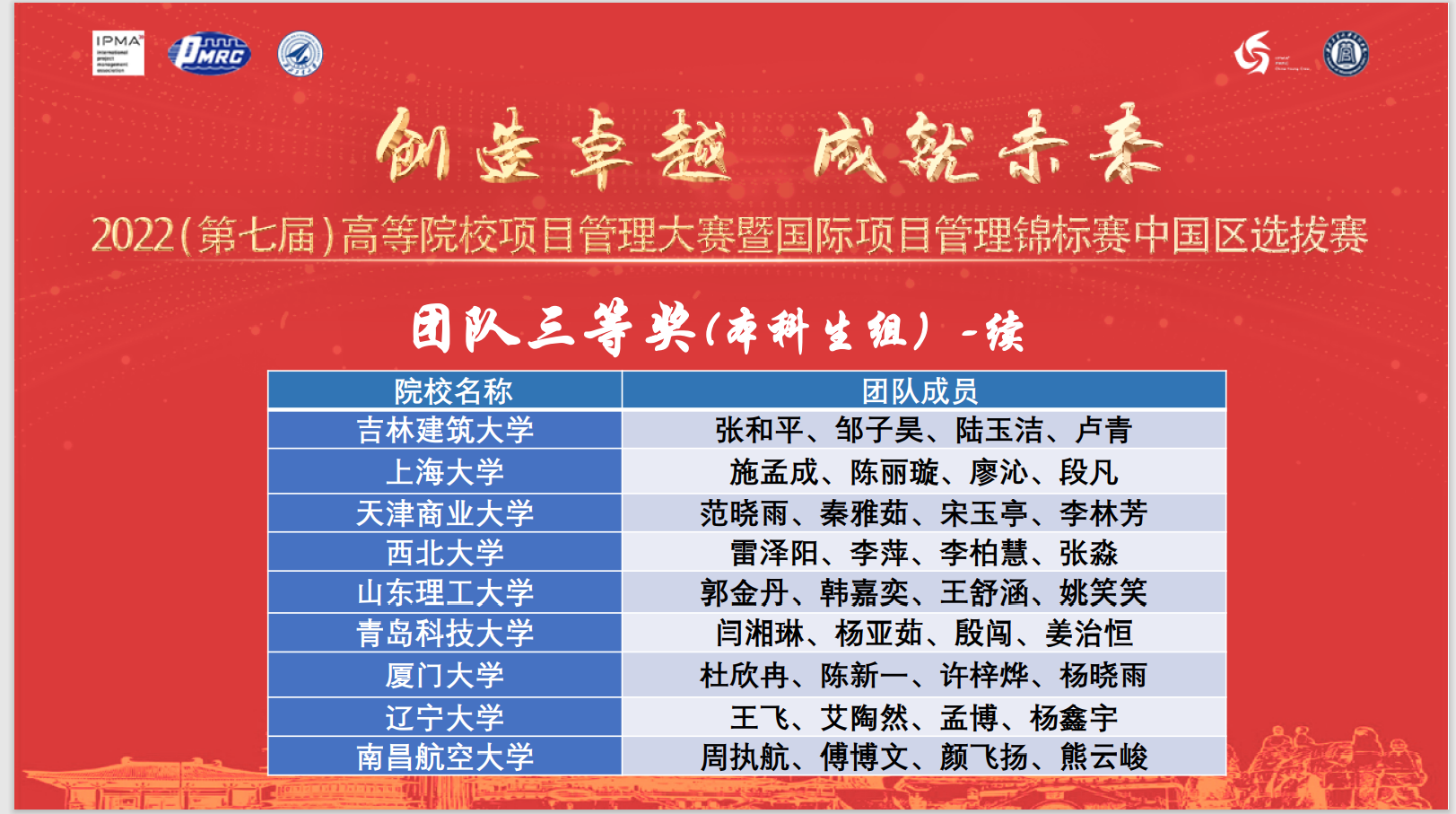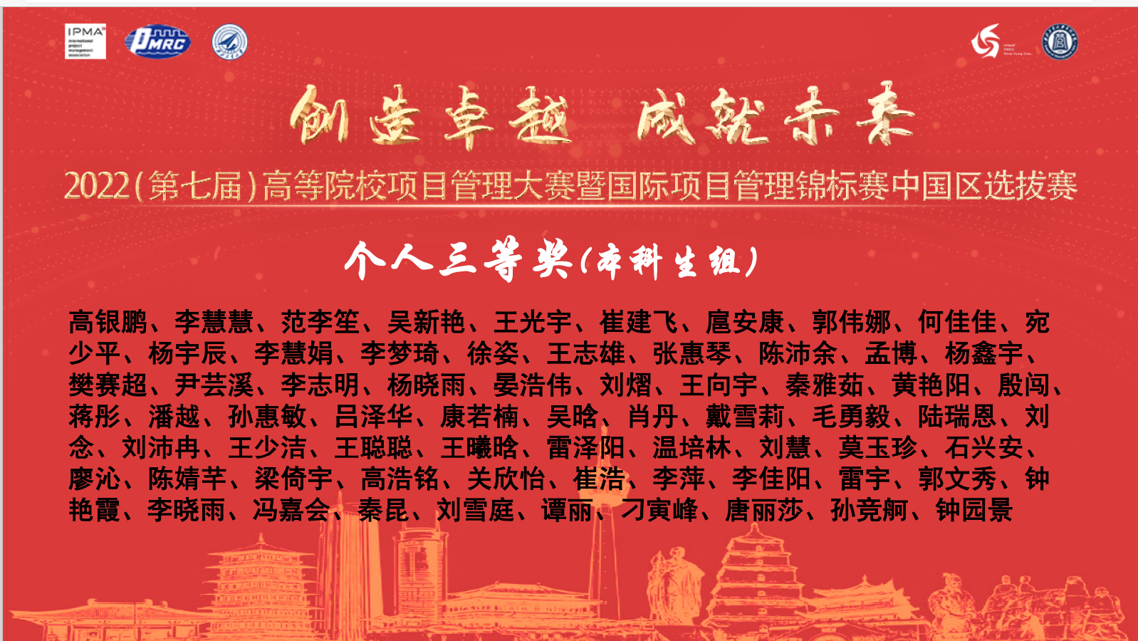 我院公共政策与管理系闫杰老师和伍勇老师指导的参赛队,获得2022年第七届高等院校全国项目管理大赛团队三等奖,个人二等奖一项,个人三等奖两项。