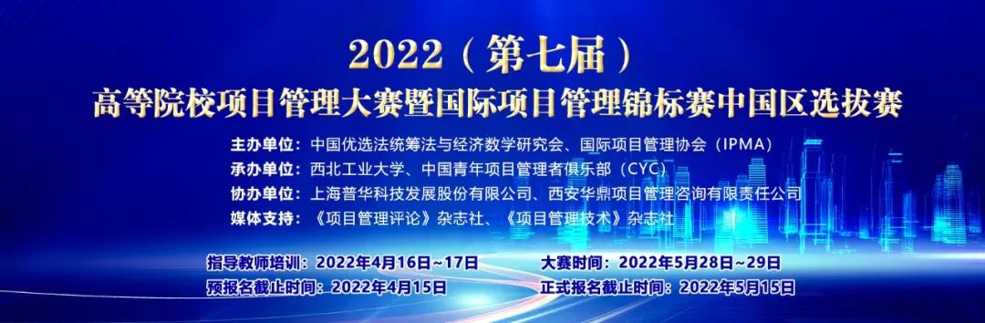 高等院校项目管理大赛是由华罗庚教授创立的中国优选法统筹法与经济数学研究会旗下的项目管理研究委员会(简称PMRC)负责组织实施的、面向高等院校在校学生的全国性项目管理学科创新性竞赛,同时也是“国际项目管理锦标赛(Project Management Championship)”的中国区选拔赛。其目的在于进一步推动项目管理理论和实践成果在中国高等院校青年大学生中的普及和应用,促进中国项目管理的专业化、信息化、国际化和项目经理的职业化。自2016年举办首届比赛以来,高等院校项目管理大赛已经成功举办六届,得到了各参赛院校的高度认可。