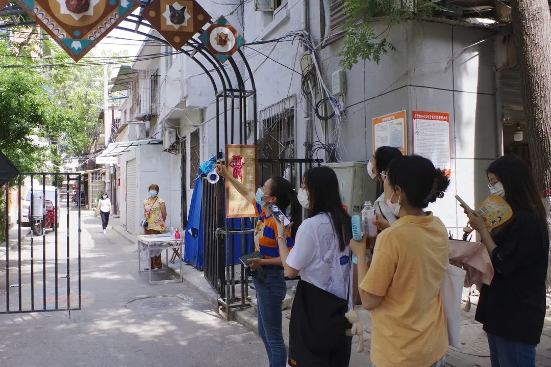 抵达解放门街道后,同学们跟随社区党委书记的步伐,穿越城市浮华的外壳,从坤中巷棚户区到皇城书坊,在一砖一瓦中体会岁月赋予这座城市的印记。
