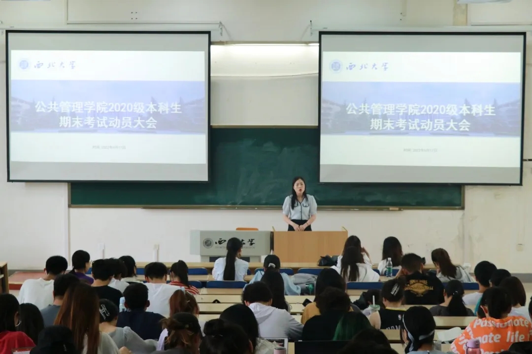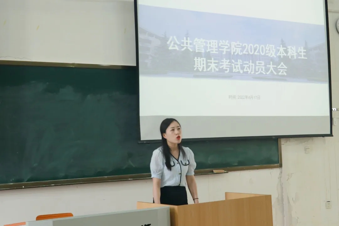 临近期末考试,为加强考风考纪建设,营造文明诚信的考试氛围,调节考前焦虑状态,做好学生安全防范教育,我院于2022年6月17日在4J301召开2020级年级大会暨期末考试动员大会,本次大会由2020级辅导员杨嘉仪老师主持。