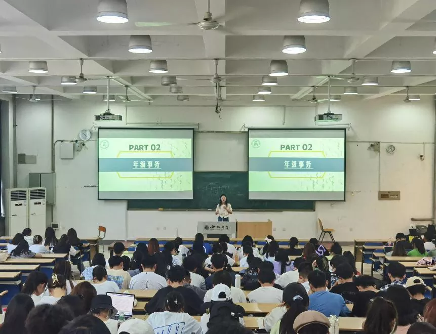最后,杨琬钰老师对年级有关事务进行了通报,对专业分流、军训、暑期社会实践等事项作出了说明,并强调在注重学业的同时学生们还应关注综合素质的提升与心理健康的保护。