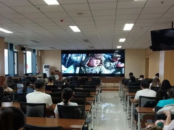 观影过程中,每个人的情绪都随着剧情与主人公的命运而跌宕起伏。随着电影内容的深入,影片所展现的爱国情怀引发了在场同学的共鸣。