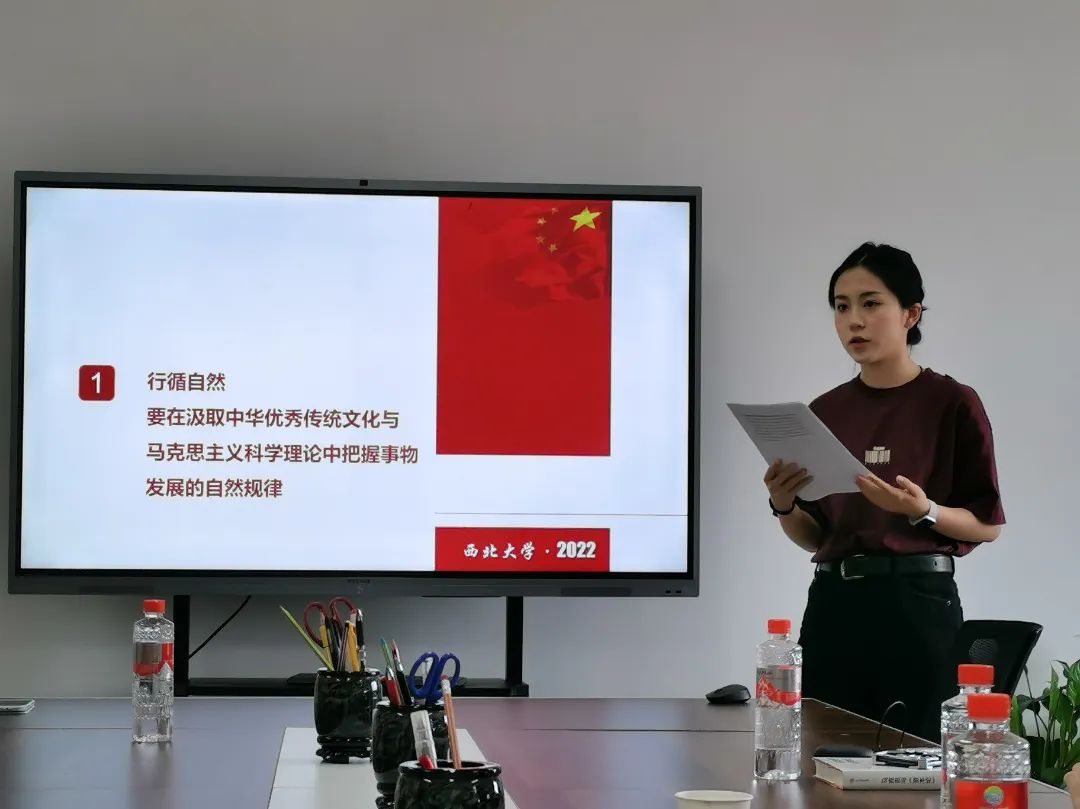 研究生公共行政学系第二党支部入党积极分子孙文静同志分享了《习近平与大学生朋友们》一书,该书全景展现了习近平总书记在从政不同时期,在河北正定、福建、浙江、上海和到中央工作以来共50段同青年大学生交流交心交友的故事,展现了总书记对青年始终如一的关注关心关爱。孙文静同志介绍,该书中多次提到“行循自然”一词,纵观全书,“行循自然”是要求青年要在基层的广阔天地中了解事物发展的自然状态要在实践中探机理、炼真知,在实践中找苦吃、勇创新,在实践中明志向、勇担当,在与逆境、困难的搏击中涵养从容不迫、顺其自然的人生哲学。青年是祖国的未来,中华民族的接力棒传递到了青年手中。孙文静同志呼吁大家应牢记总书记“行循自然”的嘱托,在为祖国、为人民的奉献中彰显青春力量,让青春之光照亮伟大复兴梦想的前进道路。