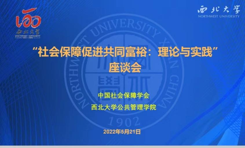 2022年5月21日,由中国社会保障学会主办、西北大学公共管理学院与陕西省“三秦学者”创新团队承办的“社会保障促进共同富裕:理论与实践”座谈会在西北大学举行。来自民政部政策研究中心、中国人民大学、浙江大学、南京大学、华中科技大学、西南财经大学、江西财经大学、西北大学等十余所高校与研究机构从事社会保障专业研究的近三十名专家学者通过线上线下相结合的方式出席会议。各位专家学者围绕共同富裕这一国家战略主题从社会保障专业角度进行深入探讨交流,为共同富裕的实现作出理论贡献。