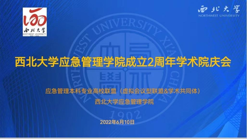 2022年6月10日上午,西北大学应急管理学院成立2周年院庆会暨应急管理学科建设交叉与融合学术研讨会在西北大学长安校区西学楼1304会议室召开。本次会议由应急管理本科高校联盟(虚拟会议型联盟&学术共同体)、西北大学应急管理学院主办,以“应急管理学科建设:交叉与融合”为主题,旨在推动应急管理专业高质量发展,促进应急管理学科交叉与发展。来自线上线下近100多名嘉宾参加了本次会议。此次会议有效促进了联盟院校的沟通与合作,共同推动了应急管理学科交叉与融合。