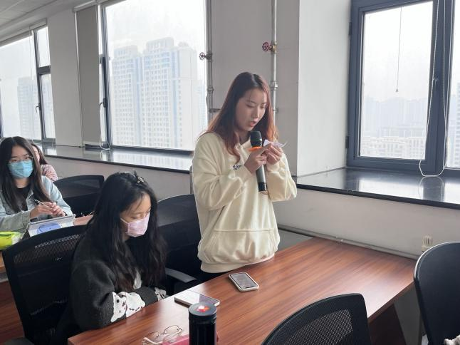 活动伊始,齐娆和席祎瀛两位同志首先领学党的二十大报告全文,从“过去五年的工作和新时代十年的伟大变革”、“开辟马克思主义中国化时代化新境界”、“新时代新征程中国共产党的使命任务”、“全面建设社会主义现代化国家的战略部署”四部分梳理党的二十大报告全文结构脉络及重点内容。特别对中国共产党的中心任务以及“中国式现代化”的内涵与本质要求进行详细解读,并以习近平总书记对当代青年的深情寄语为依托,重申“青年要勇立时代潮头,争做时代先锋”的奋勇拼搏精神。