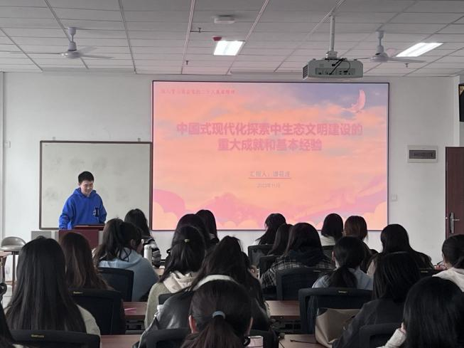 谭筱波同志从“人与自然和谐共生”的视角切入,结合个人研究方向对中国式现代化探索中生态文明建设的重大成就和基本经验进行分享。他首先阐述了生态文明建设与中国式现代化的内在逻辑,并提炼出党的十八大以来生态文明建设的治理逻辑。随后从根本保证、制度释能、法制保障、理念领航、全球实践等九个方面重点介绍了党的十八大以来生态文明建设的治理方略。最后梳理总结了生态文明建设的重大成就和基本经验,并强调了中国共产党在我国生态文明建设中的关键组织领导地位。