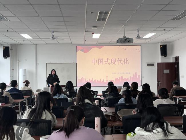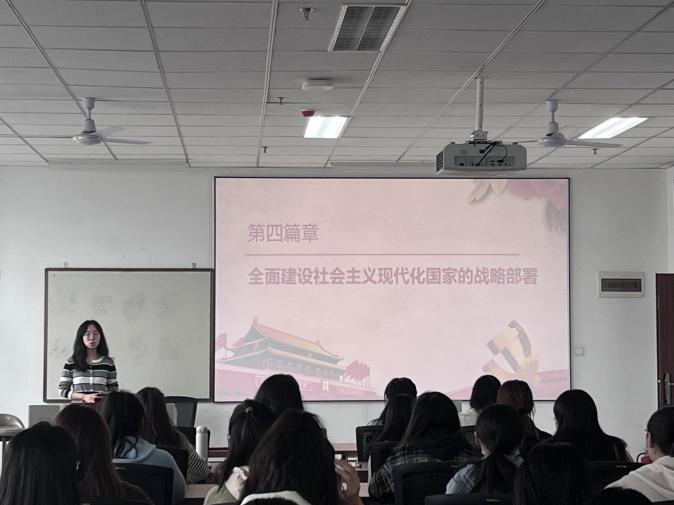 喇燕琳同志对“中国式现代化”以及“现代化和中国式现代化”概念辨析做了详细解读。她对“现代化”概念的提出、发展沿革和逻辑顺序以及“中国式现代化”的本质要求、显著特征和时代意义进行深入讲解。并结合自身实际和学科背景,着重强调时代背景下作为青年学生党员的使命担当。