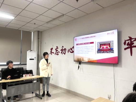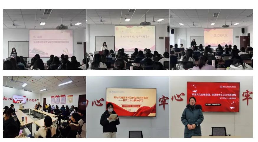 来自学院各专业的学生代表结合自身所学,从行政管理、档案学科、心理学等不同学科以及生态文明、文化建设、法治建设等不同领域带领同学们研读了党的二十大报告全文,细梳理论脉络,深入领会了报告精神,分享了党的二十大报告的不同层面的内容。活动结束后,各班级成员聚焦主责主业,从自身学科视角分享交流了自身的学习感悟。在系列活动中,各班级成员通过学生代表的精彩讲述深刻领悟了党的二十大报告主旨内容及核心精神,深感责任重大、使命在肩。今后同学们将不断增长知识本领,勇于突破创新,自觉把个人学术追求同国家和民族发展紧紧联系在一起,勇担时代之任,为中华民族伟大复兴而努力学习,艰苦奋斗。