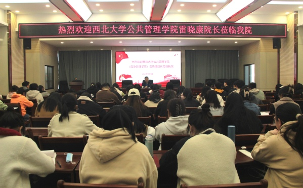 3月5日,院长雷晓康教授在西北师范大学社会发展与公共管理学院作研究生招生宣讲。报告会由西北师范大学社会发展与公共管理学院副院长陈卉老师主持,学院党委副书记何冰清老师、团委书记侯顺斌老师及本科生80余人参加此次宣讲会。