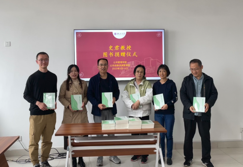 2023年3月15日下午,公共管理学院公共信息资源管理系在西学楼1316室举办史君教授新作《档案工作实践与思考》捐赠仪式及交流会。史君教授曾是西安市碑林区档案局研究馆员、陕西省档案学会第七届与第八届理事等,现任中共西安市碑林区绿叶档案工作室党支部书记、主任。此次会议由档案学学科带头人黄新荣教授主持,公共信息资源管理系主任王铮副教授、副主任李姗姗副教授、赵清副教授、王宝红老师及档案学专业各年级学生代表参加。