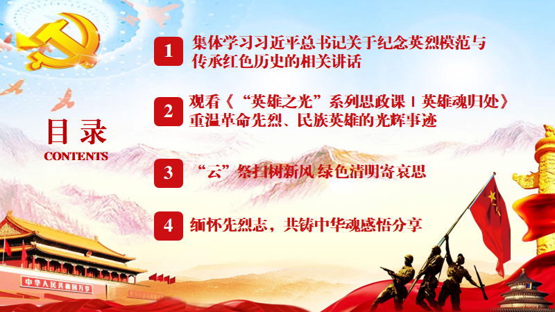 活动伊始,韩晓丽同志带领支部全体成员一同学习了习近平总书记关于纪念英烈模范与传承红色历史的相关讲话,为本次党日活动奠定了鲜明的红色基调。一寸山河一寸血,一抔黄土一抔魂,一年一度的清明节,让全体党员和积极分子铭记,是无数抛头颅洒热血的英雄烈士成就了今天的美好生活。正如习近平总书记所言:“一个有希望的民族不能没有英雄,一个有前途的国家不能没有先锋”。清明节,祭祀先人,也同样缅怀英烈。天地英雄气,千秋尚凛然。
