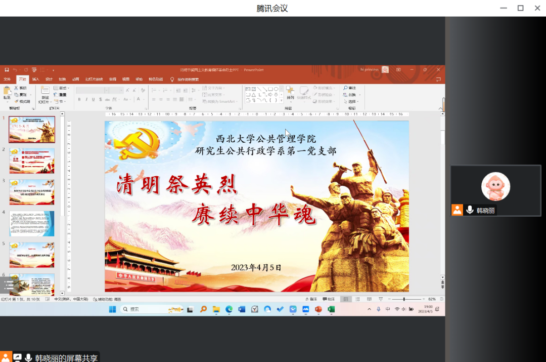 为深入学习贯彻党的二十大精神,缅怀革命先烈,赓续红色血脉,从红色基因中奋进力量,研究生公共行政学系第一党支部于4月5日开展“清明祭英烈,赓续中华魂”党史学习教育。会议由支部书记韩晓丽同志主持,支部全体党员和积极分子共计49人参加。