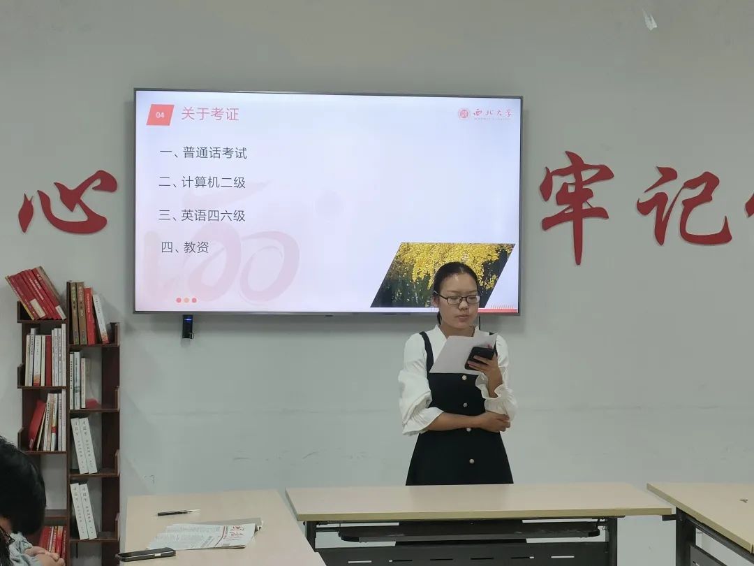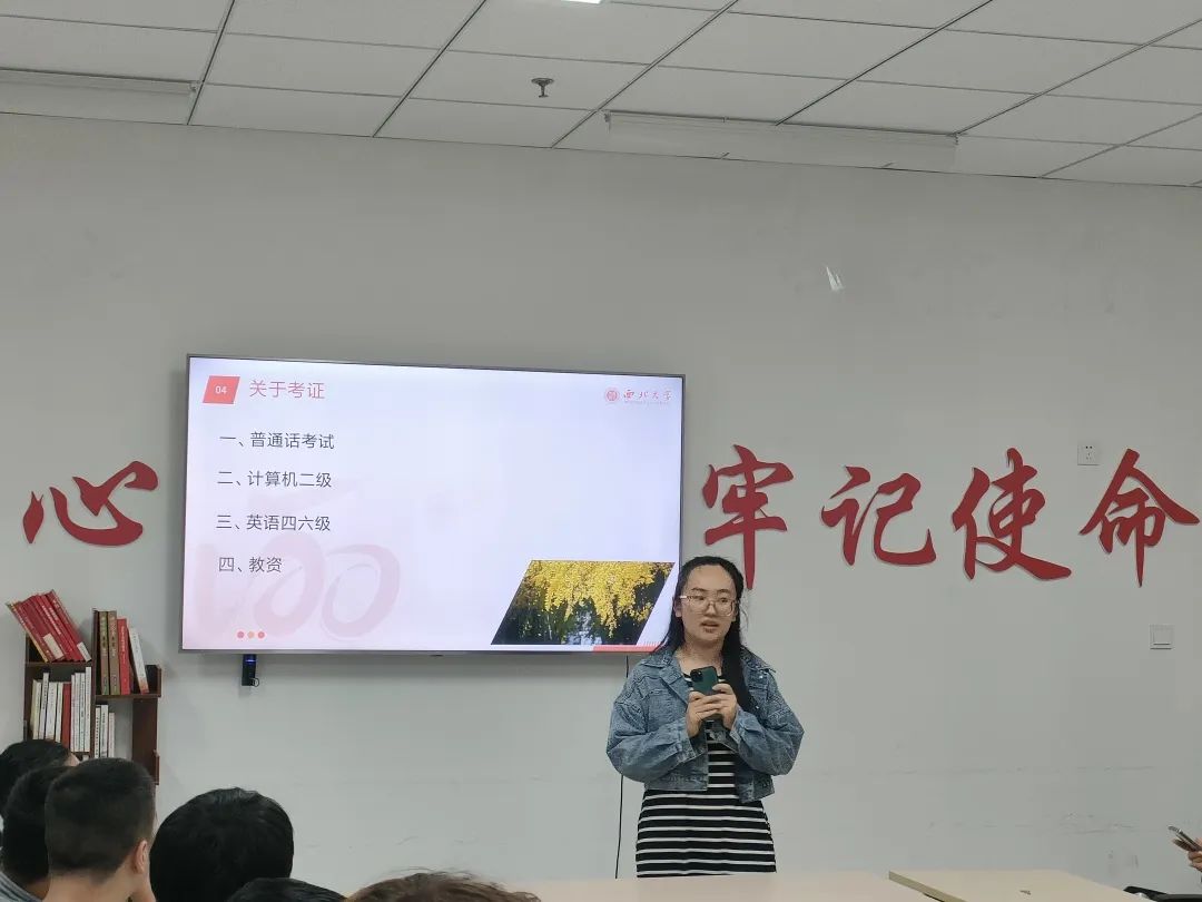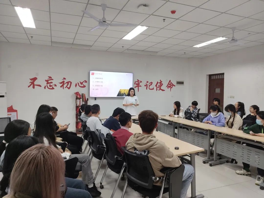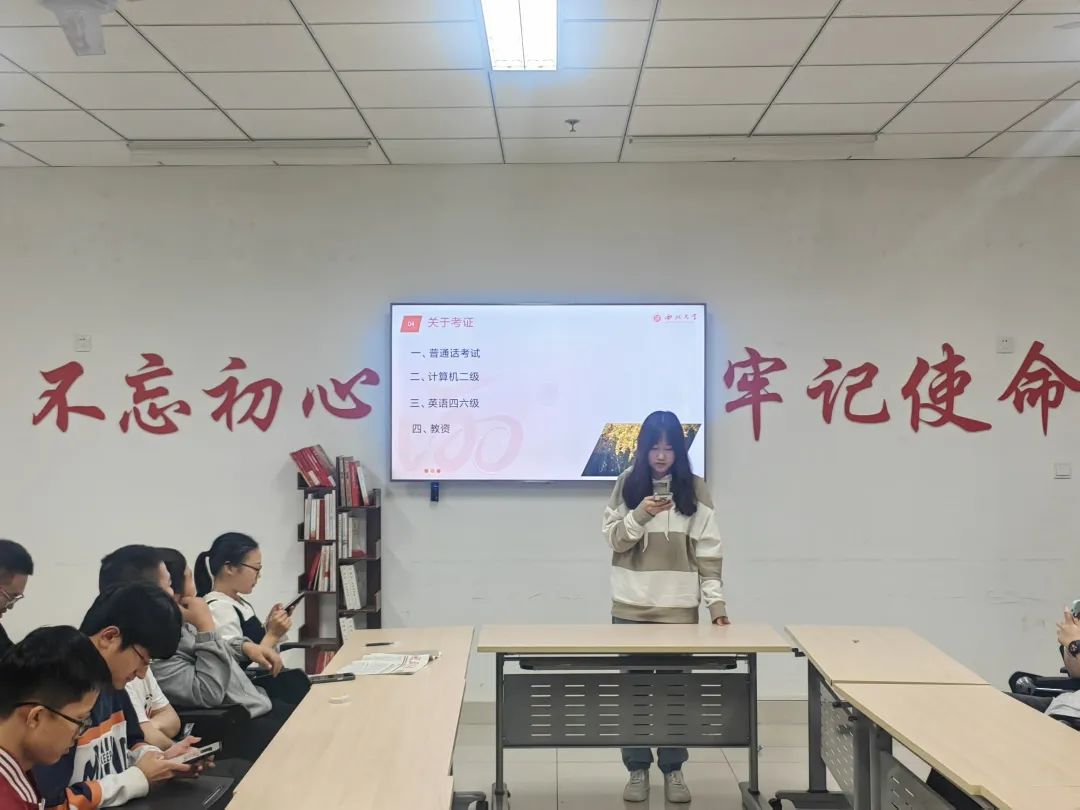 接下来,班长邀请四位同学分别从普通话考试,计算机二级,英语四六级,教资四个方面进行经验分享与交流。