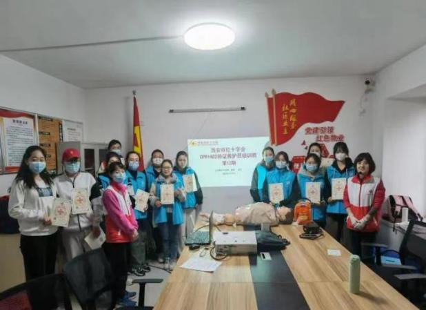 第一次在班群里面得知有急救培训活动的消息,我立马就报了名。当天下午,陈莉、孟芊老师分别从红十字会基本知识、救护概论、心肺复苏等方面给我们进行了生动的授课培训,我们积极操作,认真学习相关知识。培训结束后,我们参加了理论考试和实操技能考试,并获得了红十字救护员证书和急救包。通过这次的培训,我掌握了相关应急救护知识,并且真正为促进全民健身志愿服务、基层社会的治理贡献了一份自己的力量。