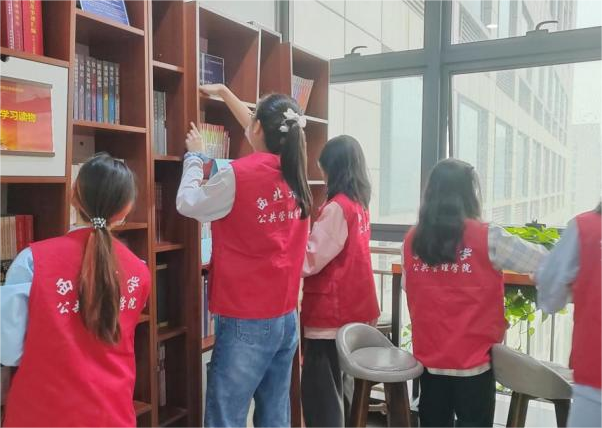 当天下午,2022级公共管理类专业受助学生来到西学楼13楼阅读空间进行擦拭打扫。劳动过程中,同学们全身心投入,认真打扫每一个角落,相互配合、合理分工,使西学楼阅读空间焕然一新。