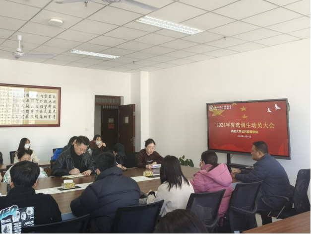 为进一步鼓励学院学生响应国家号召前往基层服务人民,2023年11月23日下午,我院在西学楼北1306召开2024年度选调生动员大会,公共管理学院党委副书记韩杰、辅导员杨嘉仪、2024届本科生及2024届研究生参会。