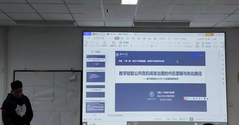 为进一步加强学术交流,营造良好的学术氛围,西北大学公共管理学院(应急管理学院)于2023年12月6日召开了以《共建“一带一路”未来十年发展展望:政策学习与跨学科对话》为主题的研讨会。此次会议由马子博老师主持,雷晓康院长和王淑珍教授担任评议人,牛雪婷博士研究生、秦奎元讲师、王若桢硕士研究生、王铮副教授、南廷博士研究生、马子博讲师、刘泓贤硕士研究生、梁炜讲师、郝玉玲副教授、耿亚楠硕士研究生、李龙林硕士研究生以及何君安副教授依次进行了关于研讨主题的经验交流与分享,部分研究生旁听了此次研讨会。