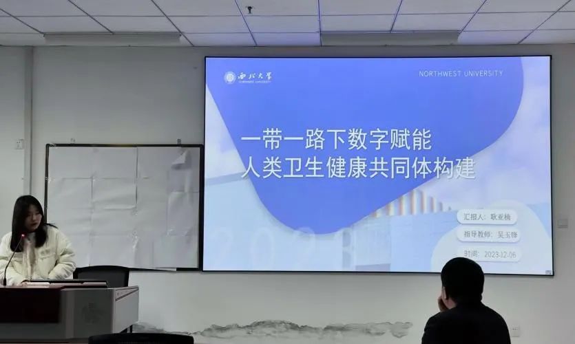 耿亚楠硕士研究生的研讨主题为《“一带一路”下数字赋能人类卫生健康共同体构建》,主要包括问题的提出、理论基础、理论分析框架三个部分。她指出公共卫生威胁具有跨国家、跨地区等特征,随着地区化和全球化的日益加深,没有任何一个国家国际组织能够独善其身。公共卫生威胁具有复杂性、多样性的特点,因此,各国要深刻认识到加强卫生合作应对公共卫生危机的重要性和必要性,沿线国家应加强卫生合作,构建基于维护人民生命健康权的人类卫生健康共同体。