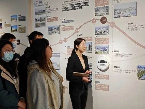 西安市城建档案馆结合馆藏特色建设“记忆·我的城”主题展厅,以时间为轴线分为“回首长安·话演变”、“突破格局·话变迁”、“筑梦而行·话发展”三大板块,通过大事记的形式呈现西安市从新石器时代到现代的城市建设和建筑发展历史,以“串珍珠式”的叙事手法展现西安市改革成就的辉煌画卷;通过空间语言构建历史情境,用设计符号述说故事情节,实现了城建档案管理和城市记忆开发的结合,助力城市建设发展。在工作人员的指引和讲解下,同学们参观“记忆·我的城”主题展厅,直观触摸到了西安城辉煌灿烂的城建文化,了解每一朝代或历史阶段的历史背景、城建亮点、建筑材料或工艺等,大量实物展品、建筑模型的展示让大家见证了中国的都城之制、营造之美、工艺之道。