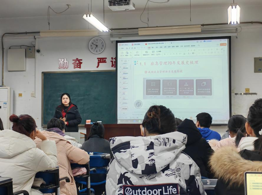 在讲授中国应急管理70年发展史之前,封超副教授先以近日甘肃积石山地震为例,结合亲身经历和汶川地震等事件对该事件进行了简要的讲解,由此说明紧急避难等应急管理知识的重要性,并体现出我国科技的进步、体制机制的发展。